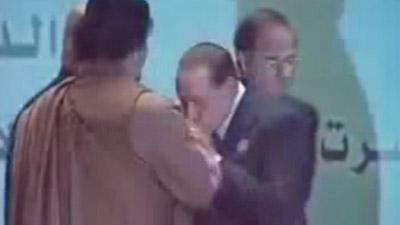 Можно смело признать, что неутомимый Сильвио Берлускони перещеголял скандально известного ливийского лидера Муаммара Каддафи в эксцентричности. Вечно молодой 73-летний итальянец смутил бывалого ливийца тем, что нежно чмокнул его руку - как истинный джентльмен проделывает это с прекрасной дамой.
