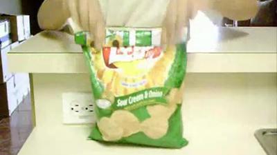Любители не самого полезного продукта из картофеля могут вздохнуть спокойно благодаря оригинальному способу упаковки уже распечатанной и недоеденной пачки своего "лакомства".