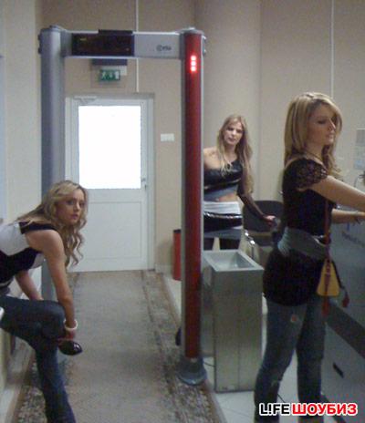 Трио Reflex едва не замерзло в аэропорту Ханты-Мансийска. Блондинки были вынуждены пройти таможенный контроль прямо в легких концертных костюмах - девушки не успели переодеться, опаздывая на рейс.