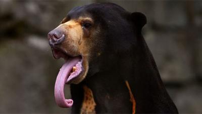 Сильная жара этим летом заставила редкого малайского медведя высунуть язык дальше обычного.