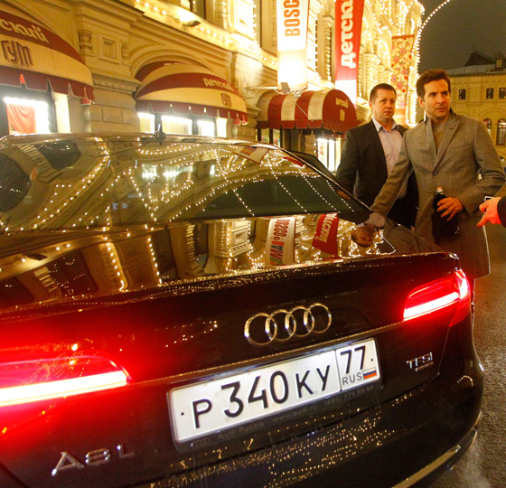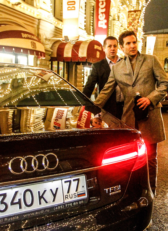 Американский актер Брэдли Купер представил в Москве картину режиссера Дэвида О. Рассела "Афера по-американски", а заодно насладился красотами Белокаменной. Едва успев раздать интервью в стенах центрального отеля Москвы, актер по московским пробкам отправился на премьеру картины в "Афимолл". Дорога до кинотеатра, скрывающегося в недрах высоток "Москва-сити", выдалась нервной. Столичные автолюбители не давали "проезда" звезде, безостановочно сигналили и пристраивались за машиной актера. Главного героя фильма столица приняла с распростертыми объятиями: уже на входе в кинотеатр Купера окружали сотни фанаток, выкрикивавших его имя и пытающихся дотронуться до кумира. Вспышки фотокамер безостановочно освещали звезду. После автограф-сессии гости во главе с Купером проследовали в зал. Стремительно запрыгнув на сцену, кумир миллионов пожелал всем приятного просмотра и обмолвился: