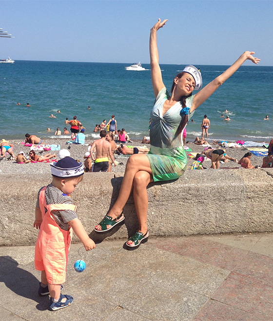 — Я очень рада тому, что наконец смогла показать сыну свой родной город, — поделилась впечатлениями с SUPER Эвелина. — Познакомила его с Ялтой. Это очень красивые и родные мне места. Мы живем в Артеке, у нас номер очень близко к морю, здесь я провожу мастер-классы по актерскому мастерству. Вчера у нас был день Нептуна, Семочке очень понравился праздник. Он вообще не любит публичные места или когда много народу, но здесь уже начал осваиваться. Я показала сыну места, где я бывала в детстве, рестораны, лавочки. Мы ходили на рынок и купили много ялтинского лука: он такой сладкий, что я ела его в детстве, как яблоко.