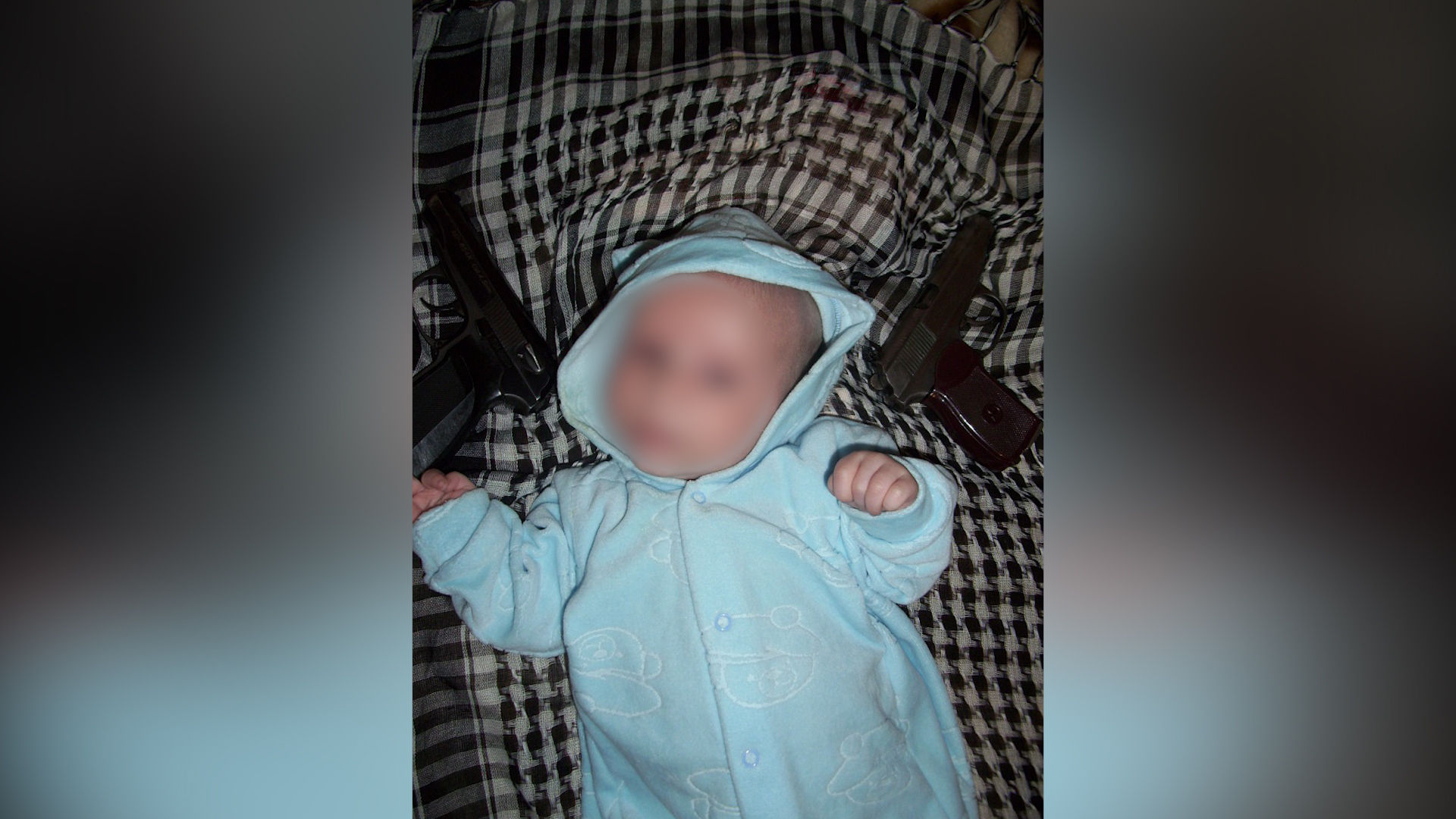 На странице последнего в соцсетях можно найти фотографии его сына, на которых младенец запечатлён с пистолетами, лежащими у головы.