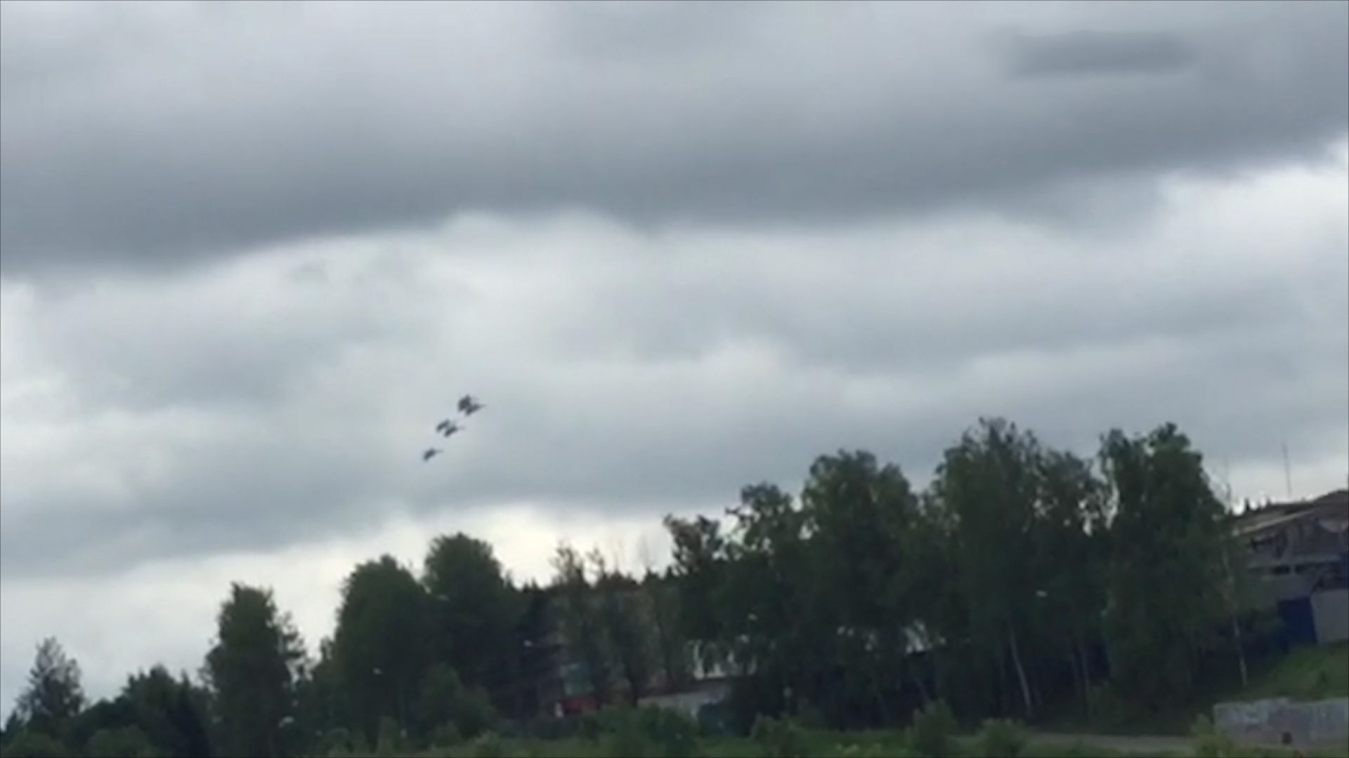 На кадрах видно, как несколько истребителей летят клином, недалеко от Хотьково. Там очевидец и снял последний вираж в составе которого был погибший пилот.