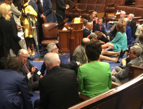 Представители Демократической партии начали акцию после того, как было отклонено четыре законопроекта о мерах по контролю над торговлей оружием.