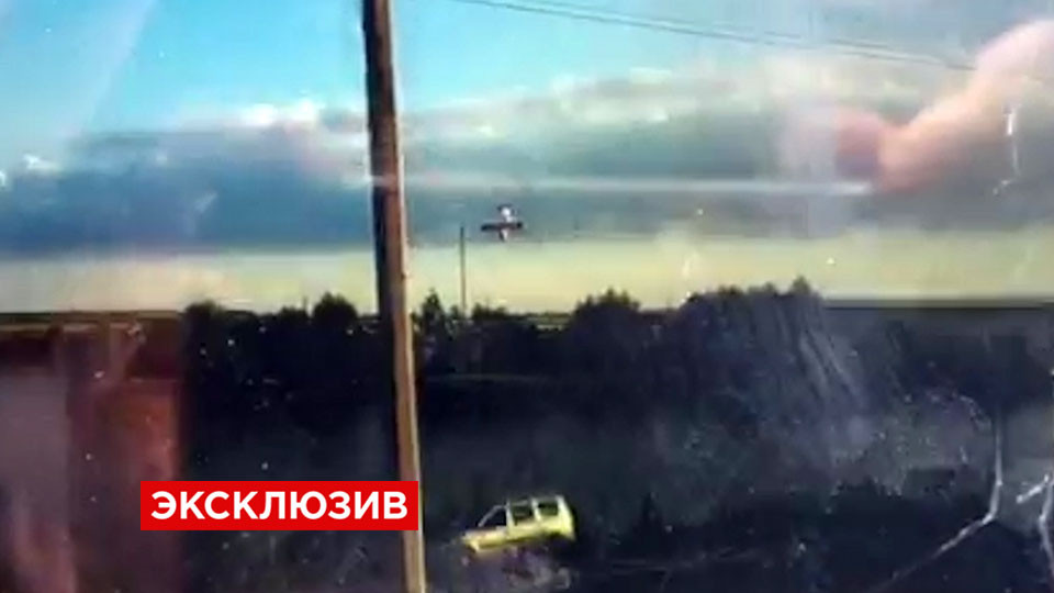 На кадрах, снятых очевидцами, хорошо видно, как неровно летит самолёт, после чего он зацепляется за провода и падает.