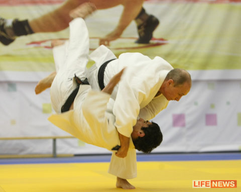 Однако через пять минут Владимир Путин вернулся. Но вместо свитера на нем было кимоно. Сделав кивок спортсменам, среди которых были и призеры, и участники Олимпиад и чемпионатов мира, глава правительства начал делать с ними разминку, выполнять растяжку, настраивать дыхание. Выполнял премьер и броски. И надо отметить, что, в отличие от других спортсменов, по наблюдению зрителей, он действовал намного жестче.
