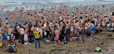 Сотни нудистов искупались в ледяных водах одной из уэльских бухт, тем самым поставив новый мировой рекорд.