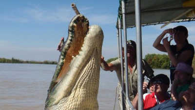 Туристическая лодка совершала рейд по реке Аделаиде, как вдруг пятиметровый крокодил выпрыгнул из воды и выхватил из рук пассажира кусок мяса.