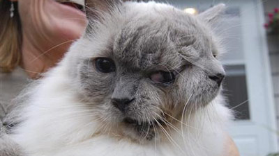 У пушистого серого долгожителя два рта, два носа и три глаза. Болезнь Фрэнка и Луи называется дипрософия, при которой благодаря особому протеину у домашних кошек развивается частичная или полная дубликация морды.