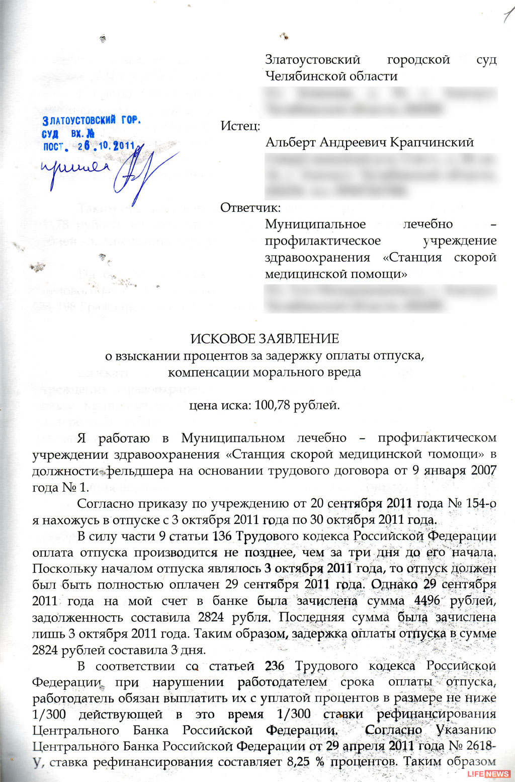 - Я понимаю, что мои требования к своим работодателям могут показаться смешными, - рассказал Life News фельдшер Альберт Крапчинский, - но справедливость должна быть восстановлена, даже если речь идет о таких мелочах.