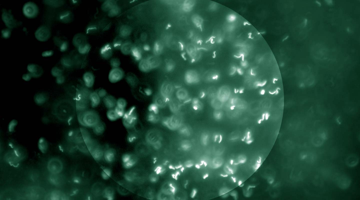 Учёные следили за перемещением множества отдельных клеток Vibrio alginolyticus с помощью микроскопа и видеокамеры. В небольшой сосуд с бактериями, содержащий гидрогель, поместили некоторое количество аминокислоты серина (для бактерий это питательное вещество). Исследователи оценивали, как быстро бактерии достигают области с наибольшей концентрацией серина, насколько плотно они собираются в этой точке, а также какие движения они используют для перемещения.