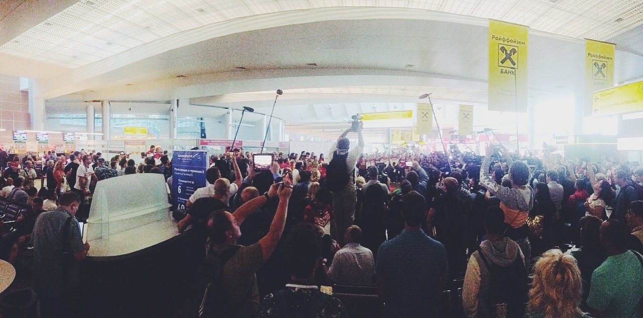 Проводить олимпийцев в Шереметьево пришло более 500 человек, и даже китайцы