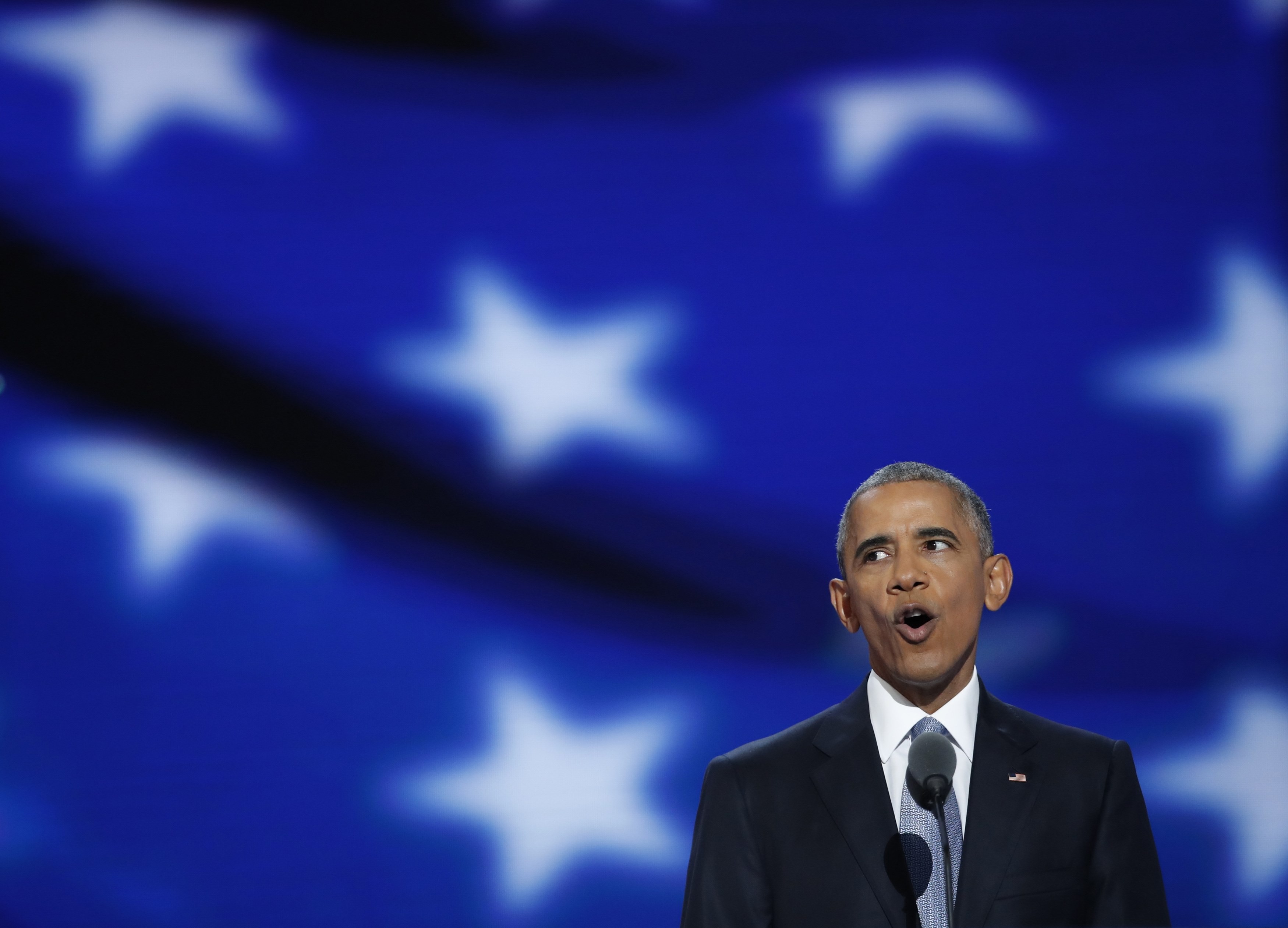 Он так же, как и предыдущие ораторы, упомянул соперника демократов на выборах — Дональда Трампа, отметив несостоятельность лозунга его предвыборной кампании — Make America Great Again ("Сделаем Америку снова великой").