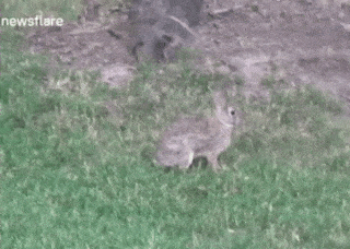 Американец заснял белку и зайца, играющих в салки