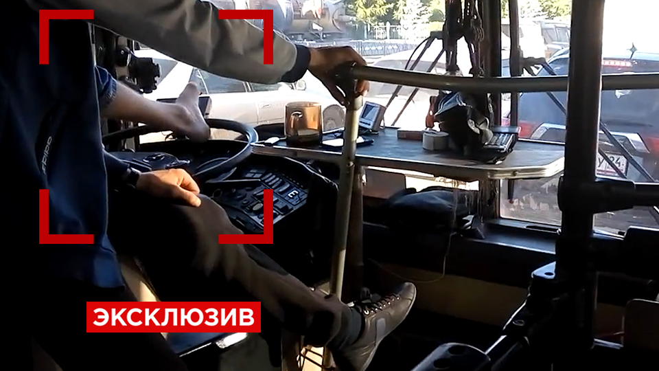 Пассажиры автобуса сняли видео, на котором запечатлён момент, как мужчина крутил руль левой ногой, а правой давил на педали, с помощью левой руки разговаривал по телефону, а правой переключал скорости.