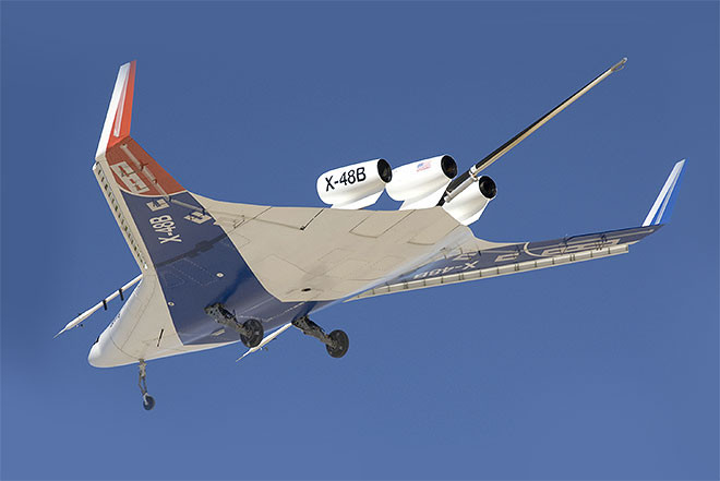 Однако насколько именно меньше — оценить очень сложно. Строительство одного экспериментального самолёта даже обычной схемы может стоить сотни миллионов долларов, что ограничивает размах подобных исследований. Поэтому в этот раз учёные из Университета Торонто (Канада) создали полноценные модели двух таких аппаратов, задав для них в разных симуляциях разные размеры. Как оказалось, небольшой региональный самолет с несущим фюзеляжем в крейсерском полёте на высоте 13,4 километра будет тратить на 8,2 процента меньше топлива, чем обычный авиалайнер таких же размеров. Правда, самолёт нормальной схемы обычно ведёт крейсерский полёт на меньшей высоте — в 10,9 километра. Однако большая подъёмная сила несущего фюзеляжа позволяет ему при той же мощности двигателей подняться выше, где воздух менее плотен и его сопротивление меньше. А вот на типичных 10,9 километра разница не так велика: несущий фюзеляж потребляет лишь на 6,1 процента меньше топлива, чем обычный самолёт.X-48B, самолет, построенный по схеме смешанного крыла. Фото: © Wikimedia Commons