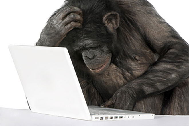 Старинный анекдот о трёх обезьянах за пишущими машинками получил новое развитие. Современные макаки способны перепечатывать текст "Гамлета" со скоростью до 12 слов в минуту, что быстрее скорости печати любого среднего офисного работника с посредственным знанием английского языка. Но самое удивительное — приматы делали это без помощи рук.