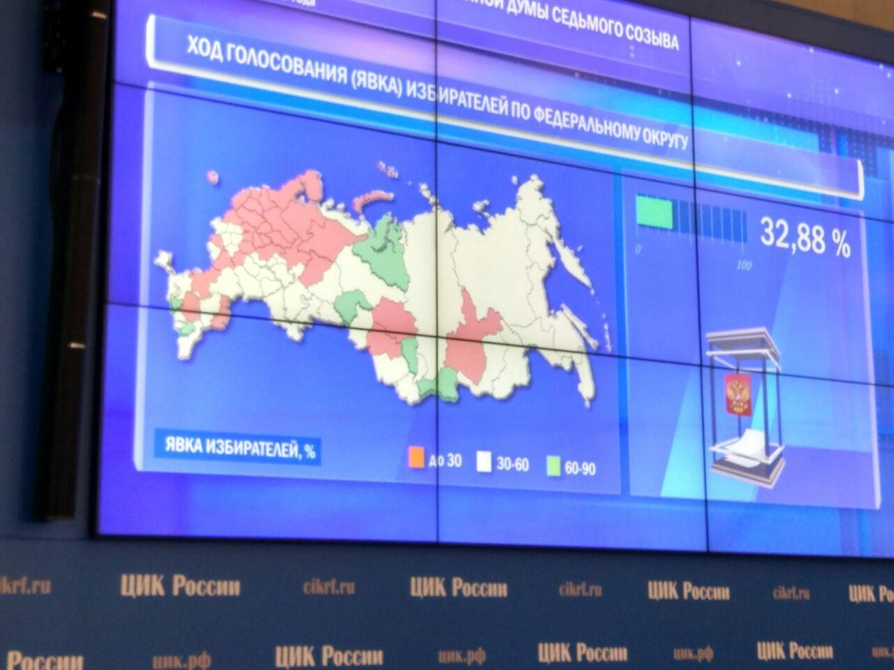 Явка избирателей на выборах в Государственную думу седьмого созыва на 15:00 по московскому времени составила практически 33%, сообщил заместитель председателя ЦИК РФ Николай Булаев. По его словам, есть регионы-рекордсмены по количеству проголосовавших — это Тыва, Тюменская область, Ямал и Кемеровская область.