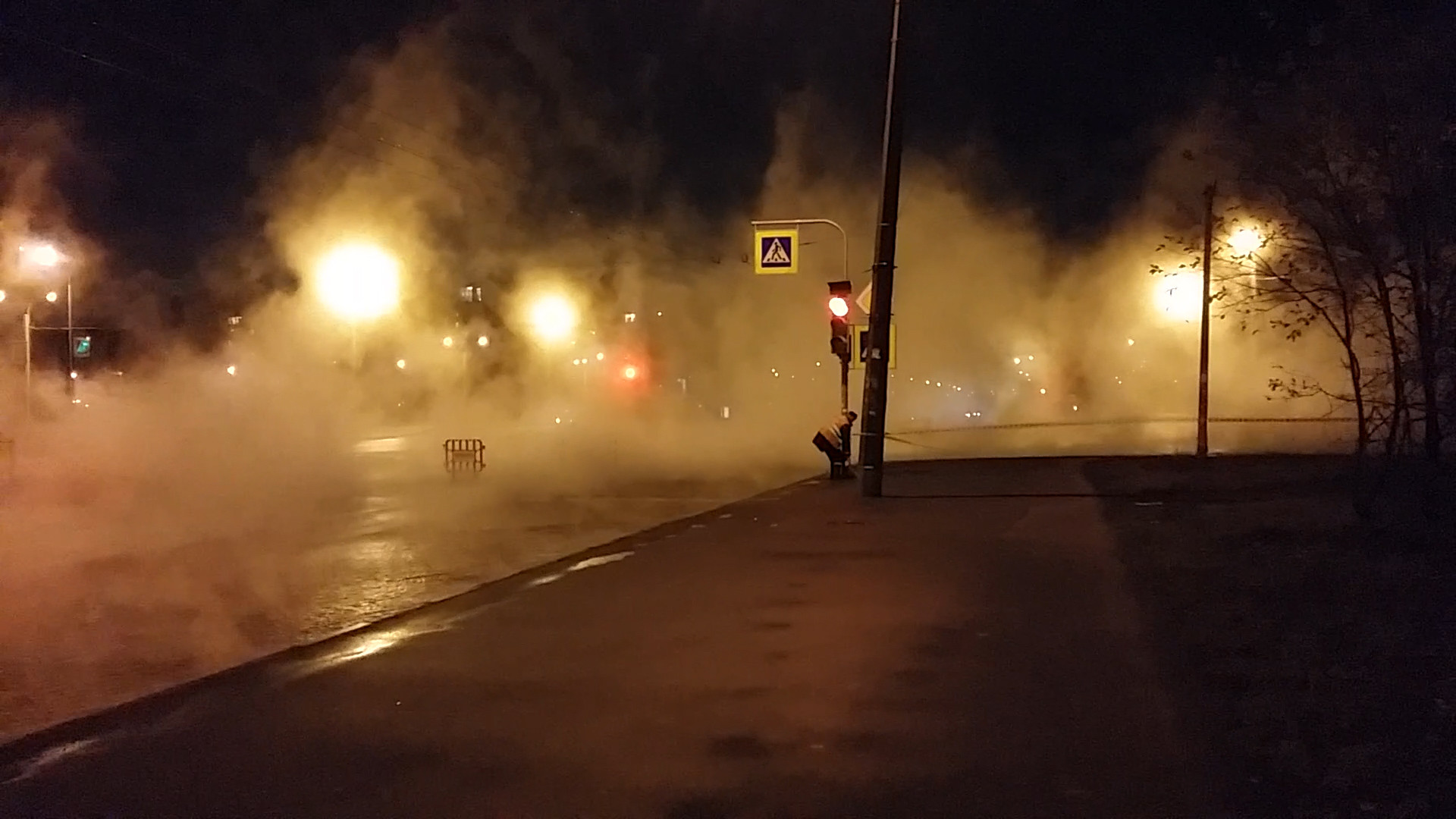 На Васильевском острове дорогу залило кипятком из-за прорыва трубы