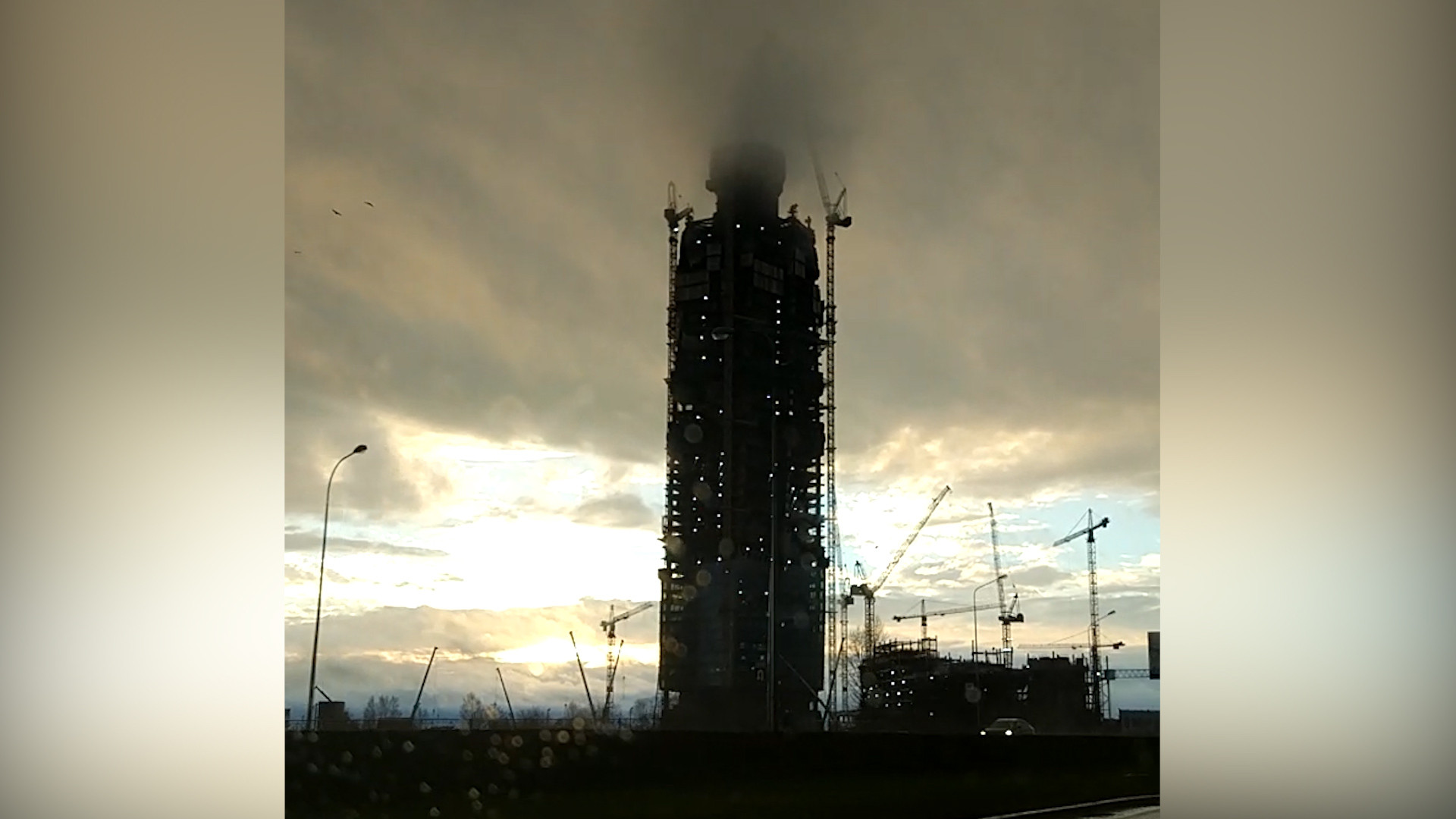 Петербуржцы приняли пар от заливки бетона на "Лахта-центре" за дым