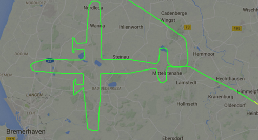Моду на этот челлендж ввёл немецкий лётчик самолёта с бортовым номером D-EFHN. Так, например, он с помощью своего самолёта умудрился нарисовать на радаре другой самолёт.