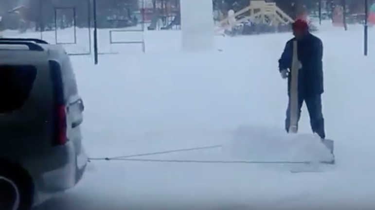 В Сети появилось видео смекалистого дворника из Ижевска. Увеличить производительность своей работы мужчина смог благодаря автомобилю. Работник коммунальной службы прицепил к машине большую лопату наподобие плуга и встал за её "штурвал".
