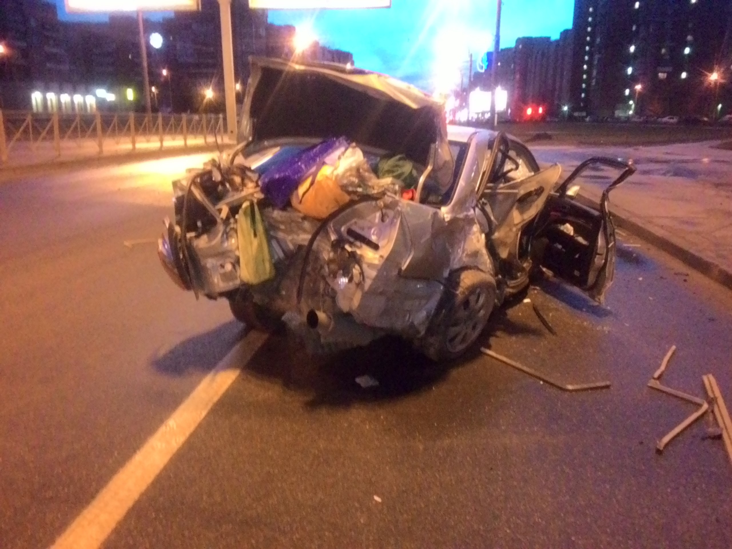 Легковушка протаранила ограждение на Ленинском проспекте в Петербурге