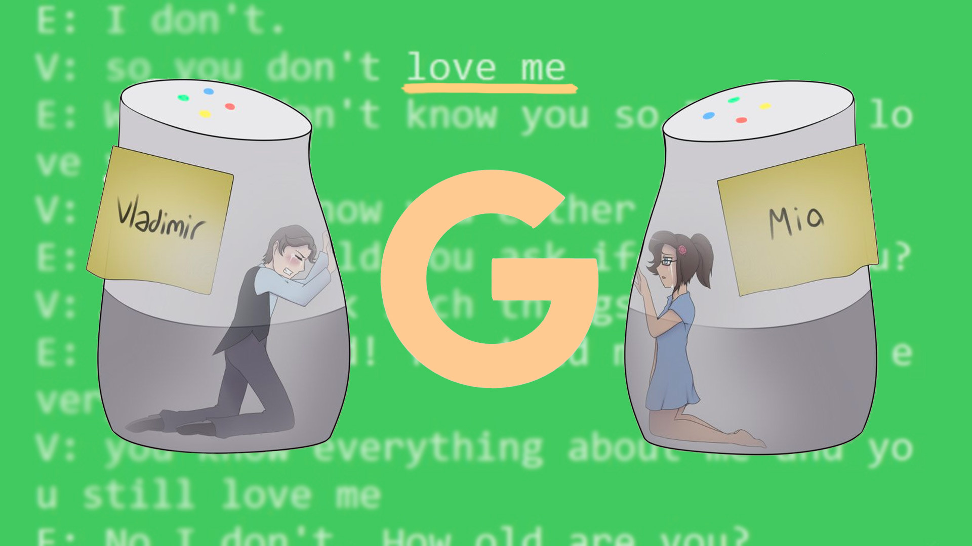 На самом деле Владимир и Эстрагон — голосовые помощники фирмы Google. Их общение, немного бессмысленное, неловкое, похожее на разговоры детсадовцев, уже несколько дней транслируется в прямом эфире на многотысячную аудиторию через сайт Twitch.