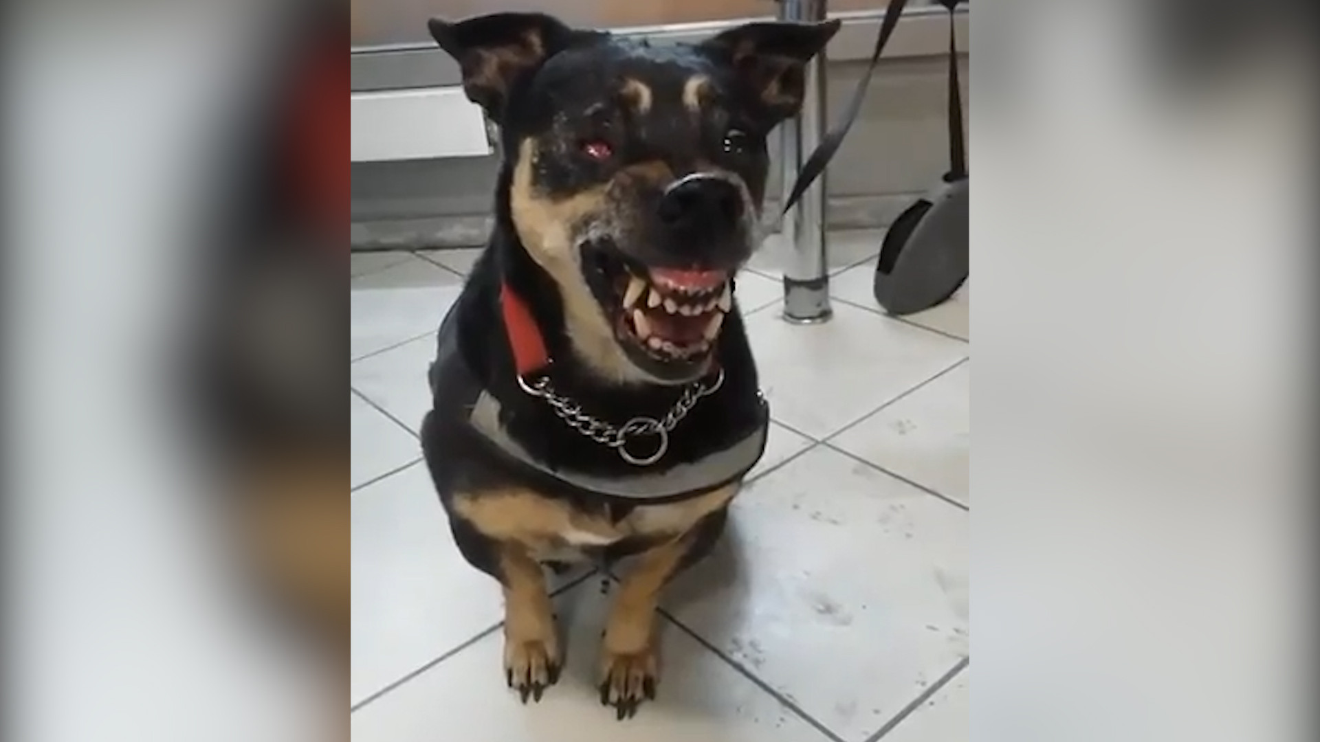 Небольшой пёсик грозно скалил зубы и рычал. Время от времени он уставал быть грозным и облизывался.Видео прислала пользователь приложения LifeCorr (можно скачать для iOS и Android) Ольга.