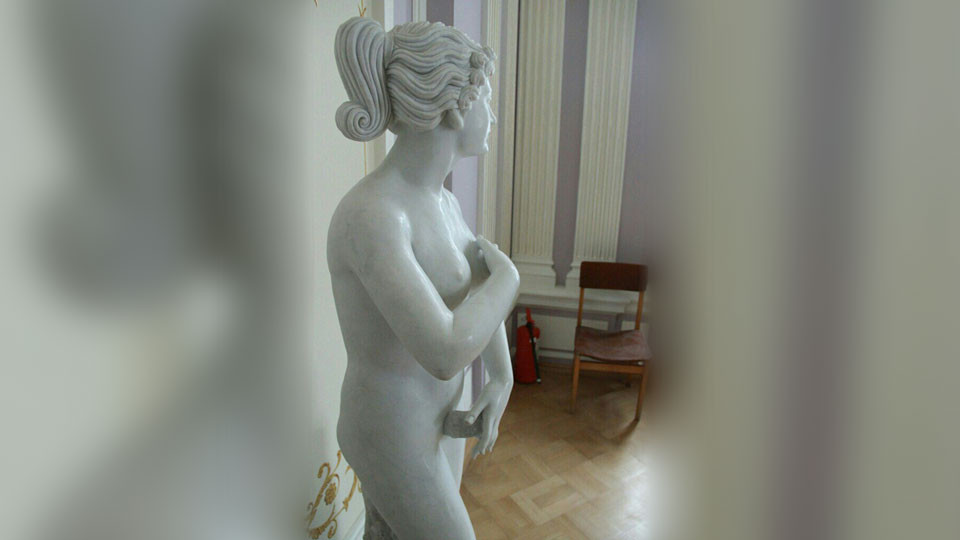 В недавно отремонтированном Асеевском дворце гости заметили странный предмет на скульптуре Венеры. Одной рукой она прикрывает грудь, а второй держится за необычный крепёж, напоминающий мужской детородный орган. Фигура стоит на самом видном месте, при входе на второй этаж дворца.