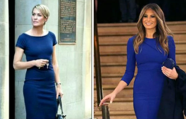 Издание сравнило наряды героини сериала с одеждой, в которой Меланья Трамп появляется на публике. Оказалось, что в некоторых случаях они действительно похожи.