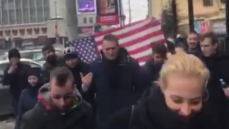 В Екатеринбурге активисты сопровождали Навального по городу с флагом США