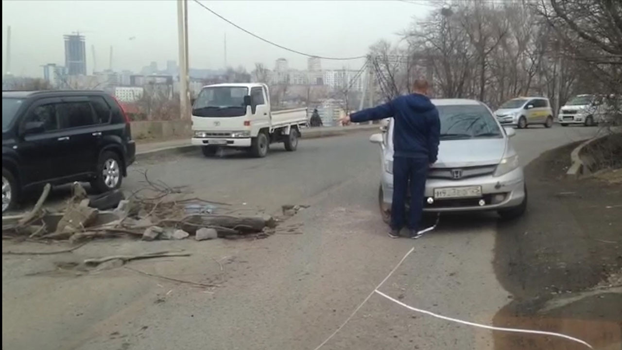Водители Владивостока сняли на видео необычное препятствие на дороге. Со слов очевидцев, ремонтники просто завалили глубокую яму посреди трассы в сторону микрорайона "Змеинка" камнями и ветками.
