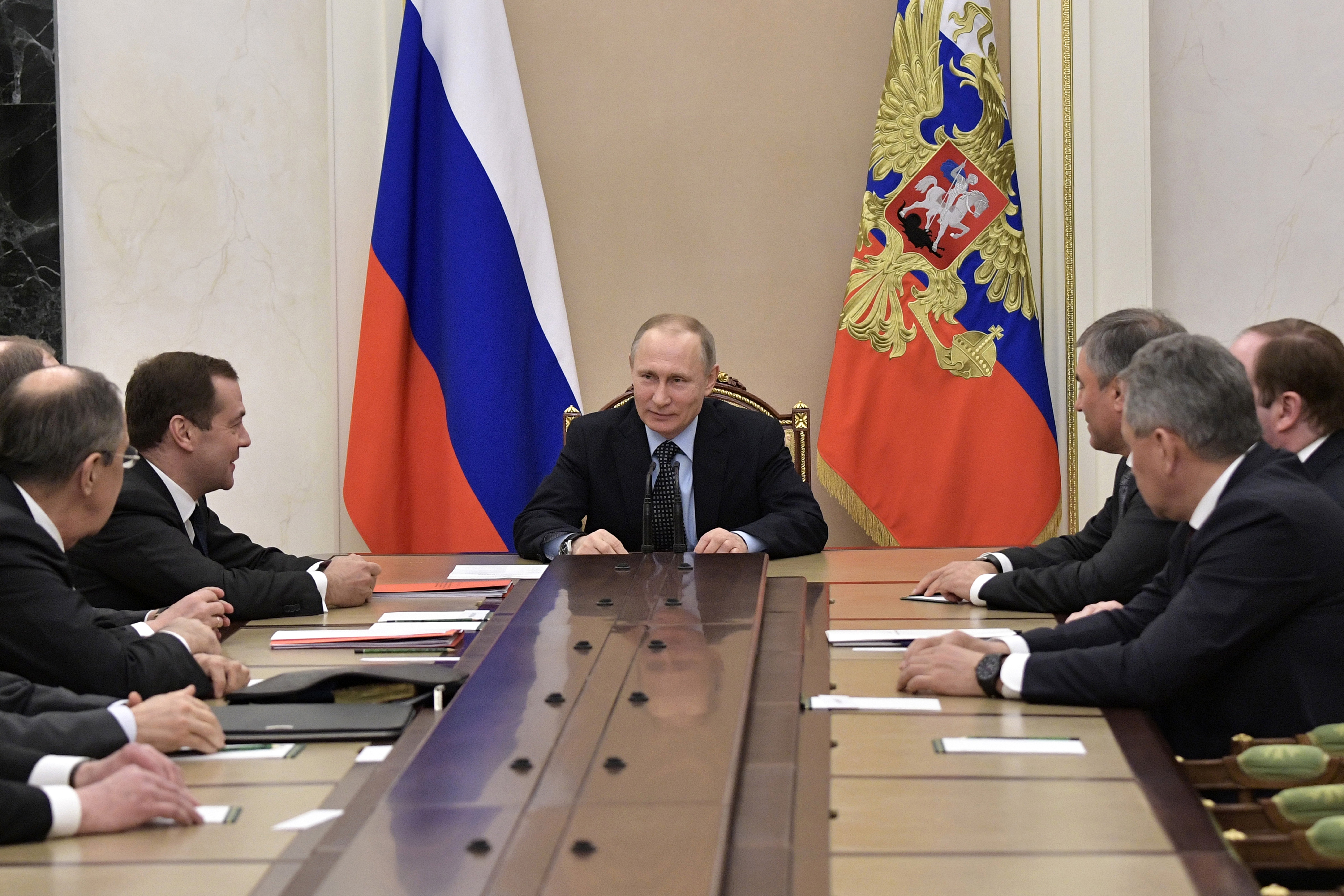 Пресс-секретарь президента России Дмитрий Песков заявил, что сегодня состоялось заседание Совбеза России с участием Владимира Путина. В заседании также приняли участие премьер-министр Дмитрий Медведев, спикер Совета Федерации Валентина Матвиенко, глава МВД РФ Владимир Колокольцев, глава МИД РФ Сергей Лавров, глава Минобороны РФ Сергей Шойгу, директор ФСБ РФ Александр Бортников и другие.