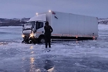 Грузовик провалился под лёд на озере Байкал