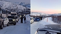 Сотни авто застряли в многокилометровой пробке из-за метели в Мурманской области