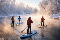 Новосибирцы устроили заплыв на сапах в 26-градусный мороз