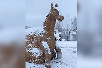 В Якутии из коровьего навоза слепили двухметровую лошадь