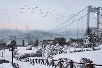 Мощный снегопад парализовал движение кораблей через пролив Босфор