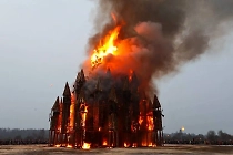 Замок высотой 26 метров сожгли на праздновании Масленицы в Калужской области